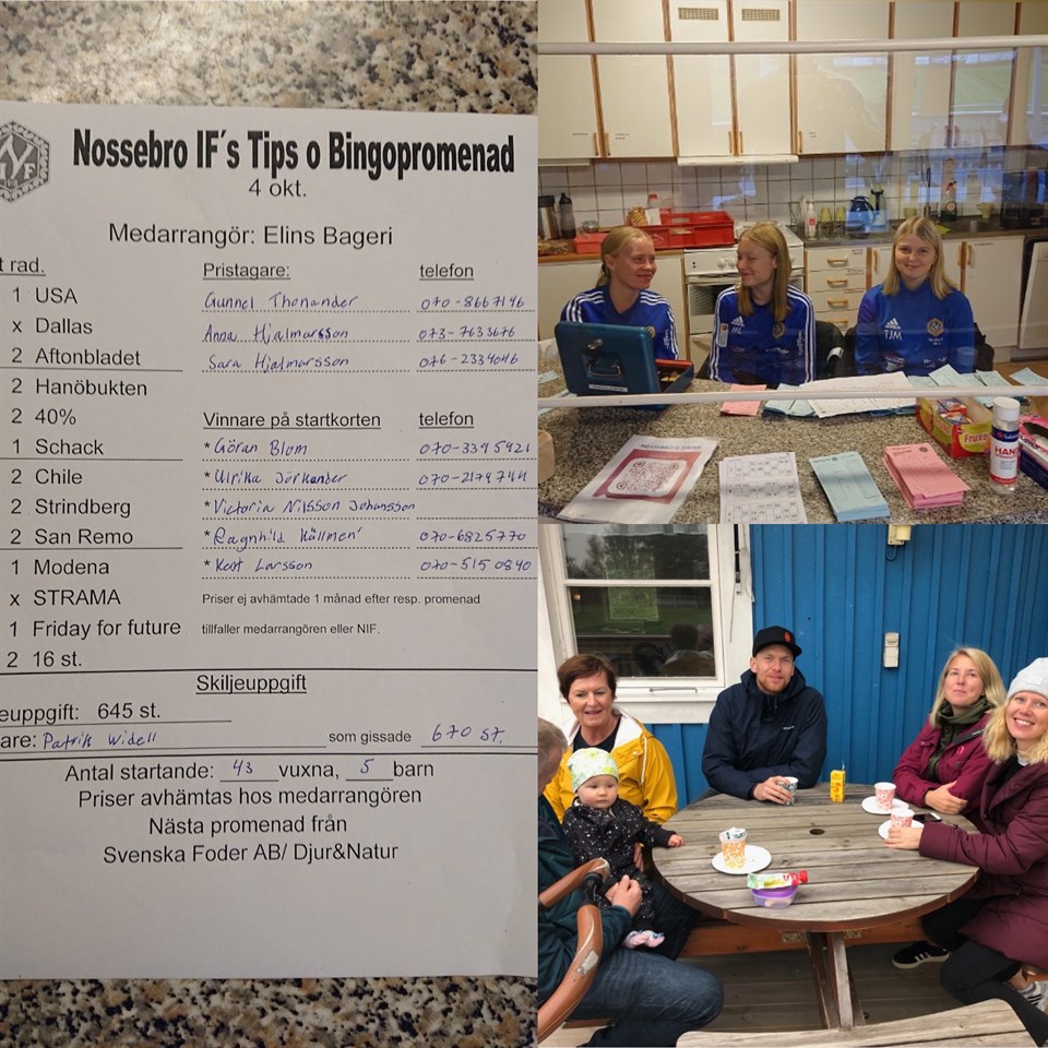 48 personer gick söndagens Tips- & Bingopromenad från Brovallen i samarbete med Elins Bageri & Konditori Se rätta raden och vinnarna här Se bilder från promenaden här Nossebro IF 5 okt 2020 0kommentarer