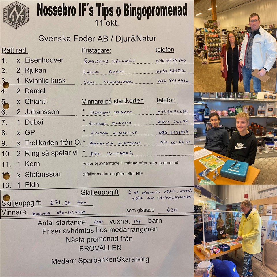 60 personer gick söndagens Tips- & Bingopromenad från Svenska Foder AB. Se rätt rad och vinnare här Se bilder från promenaden här Nossebro IF 12 okt 2020 0kommentarer