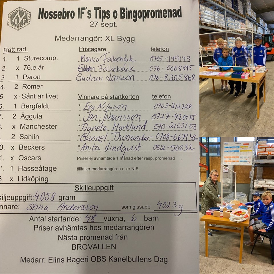 54 personer gick söndagens Tips- & Bingopromenad med XL Bygg Byggbiten som medarrangör. Se rätta raden och vinnarna här Se bilder från promenaden här Nossebro IF 28 sep 2020 0kommentarer