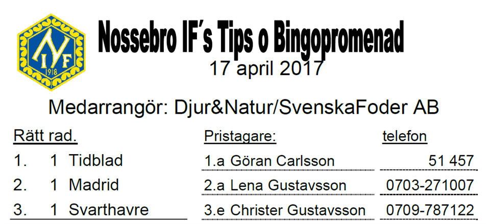 38 personer gick söndagens Tips- & Bingopromenad i samarbete med Svenska Foder. Se rätta raden och vinnarna här.