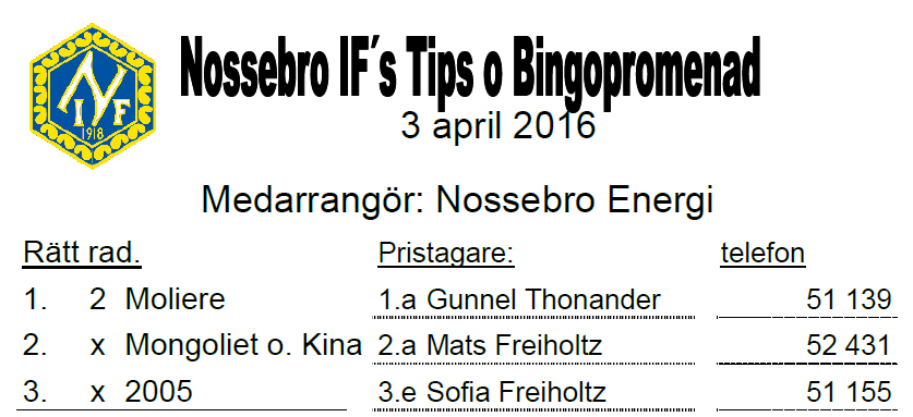 73 personer gick söndagens vårpremiär av Tips- & Bingopromenaderna i samarbete med Nossebro Energi. Se rätt rad och vinnare här.
