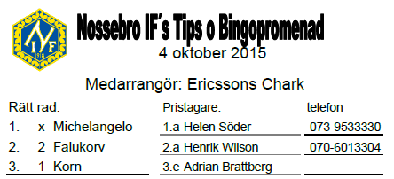 92 personer gick söndagens Tips- & Bingopromenad i samarbete med Eriksons Chark. Se rätta raden och vinanrna här!